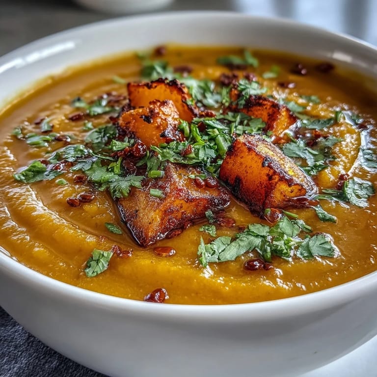 Save to Pinterest There's something about October when the farmer's market suddenly overflows with butternut squash that makes me want to huddle in the kitchen with a warm bowl of soup. I stumbled onto this particular combination on a grey afternoon when I had a squash, some red lentils, and the vague sense that spices could transform both into something unexpectedly comforting. The first spoonful—that balance of earthiness from the lentils, sweetness from the roasted squash, and those warm spices threading through—made me understand why this soup has stayed in my regular rotation ever since.