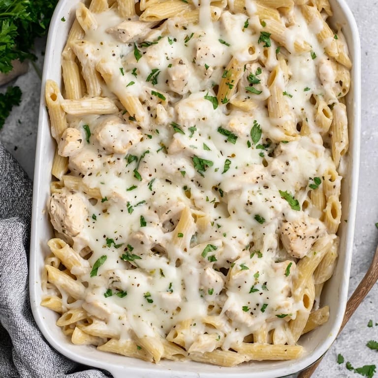 Save to Pinterest The snow was falling sideways against my kitchen window last February when I decided to make something that felt like a warm blanket in food form. I'd just come home from a terrible week at work, craving something indulgent and comforting without the effort of an all-day project. This Chicken Alfredo Bake turned out to be exactly what I needed—rich, creamy, and bubbling with that golden cheese top that makes everyone hover around the oven door. Now it's my go-to when friends come over for casual dinners, because it makes people smile before they even take their first bite.