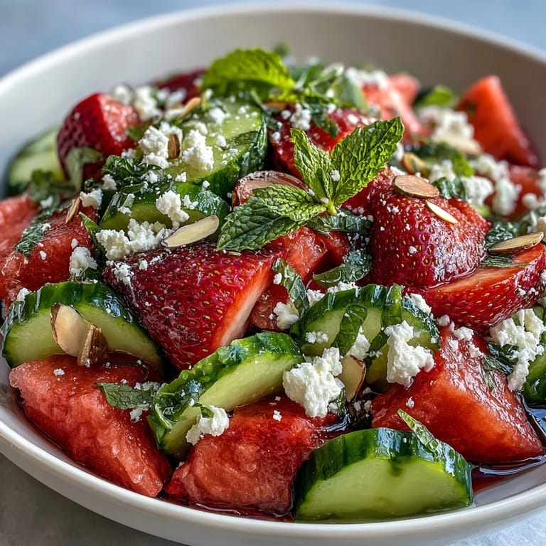 Save to Pinterest Celebrate the arrival of spring with a salad that captures the season's essence: crisp cucumber, sweet strawberries, and the uplifting aroma of fresh mint. This light and refreshing salad is wonderfully simple to prepare and brings a burst of vibrant colors and flavors to your table, perfect for a quick lunch or a lively side dish at dinner.
